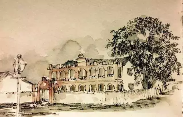 那棵酸子树30年代被台风刮倒,长成现在的样子,挡住了建筑物。
