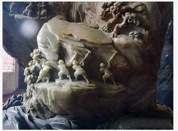 “大禹治水”的玉山用料产自中国新疆和田,为致密坚硬的青玉。这件文物是中国玉器宝库中用料最宏,运路最长,花时最久,费用最昂,雕琢最精,器形最巨,气魄最大的玉雕工艺品,也是世界上最大的玉雕之一。