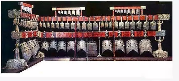 曾侯乙编钟,编钟是由六十五件青铜编钟组成的庞大乐器。其音域跨五个半八度,十二个半音齐备。它高超的铸造技术和良好的音乐性能,改写了世界音乐史,被中外专家、学者称之为“稀世珍宝”。