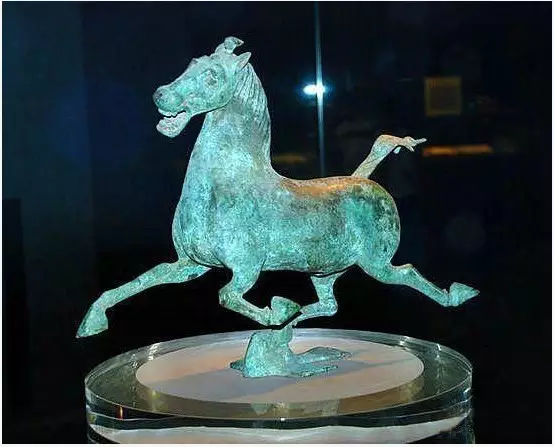 “马踏飞燕“身高34.5厘米,身长45厘米,宽13厘米。形象矫健俊美,别具风姿。马昂首嘶鸣,躯干壮实而四肢修长,腿蹄轻捷,三足腾空、飞驰向前,一足踏飞燕。