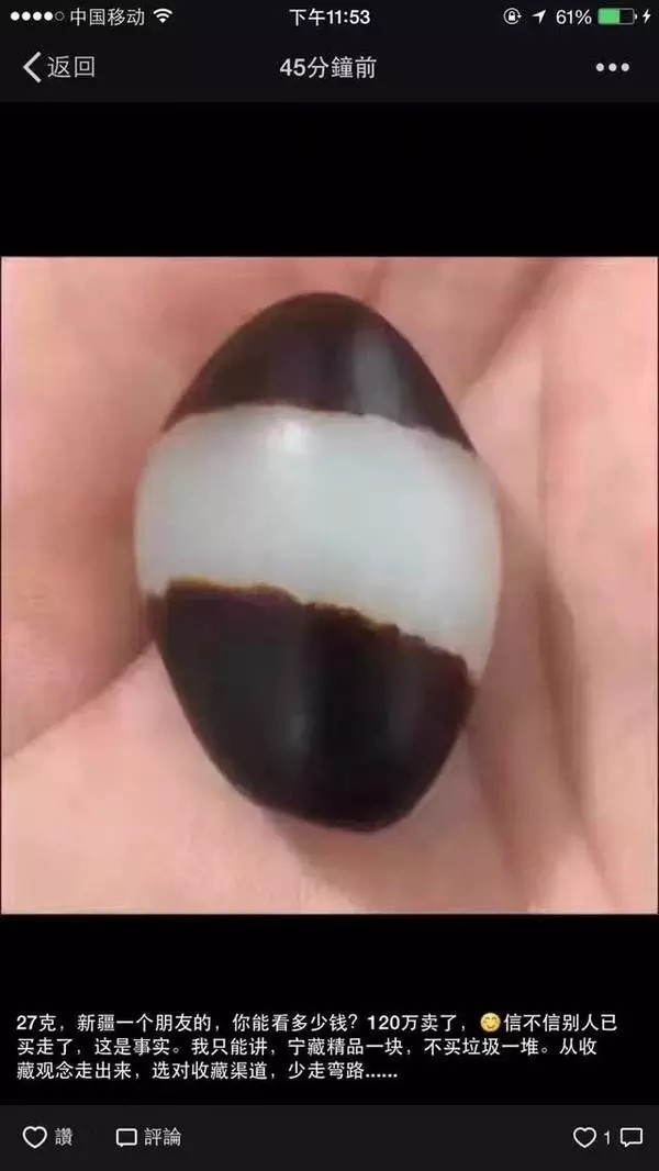 不是一级白,不是无结构,美其名曰“无伤无裂无杂色天地红黑皮羊脂鸽子蛋”,但以120万成交,真真是狮子大开口!不过这口开得能不能让人接受,还真的是个值得探究的问题。