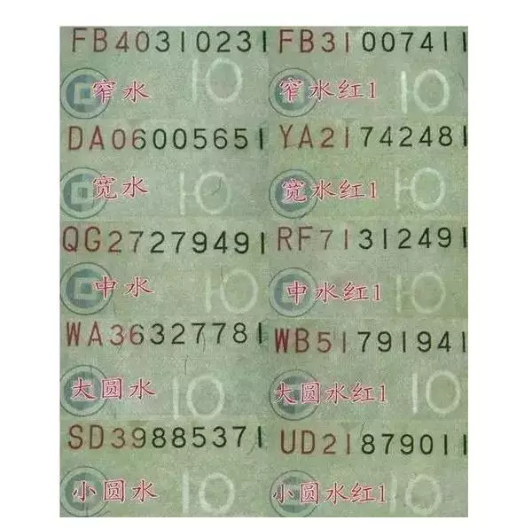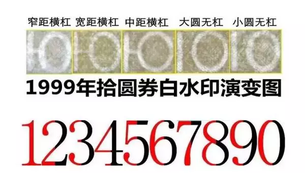 由于当时白水印仍处于半试验半实践的性质,因此从发行之初到2005年版的面世,99年版10元券的白水印一共有5个品种,在收藏界中被称之为“五水”。