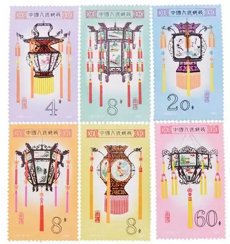 1981年,原邮电部发行了T60《宫灯》特种邮票一套6枚,主图分别是:花篮灯、龙球灯、龙凤灯、宝盆灯、草花灯、牡丹灯。由于这几枚邮票中的灯彩造型雍容大度,精美豪华。