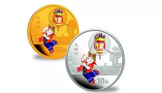2003年,中国人民银行发行了中国民俗———元宵节金银纪念币。该套元宵节金银纪念币的设计打破了民俗题材纪念币的传统,大胆采用中国民间剪纸艺术的造型,线条纹理刻画细腻,美观大方,并尝试用彩色艺术来烘托节日气氛。其中,金质纪念币为精制币,含纯金 1/3盎司,面额150元,发行量为2万枚;银质纪念币为精制币,含纯银1盎司,面额10元,发行量为6万枚。