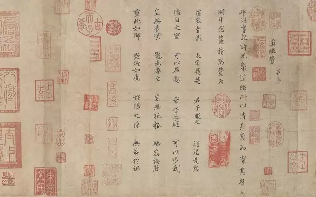 收录于《石渠宝笈》的众多书画作品大多有离奇的“身世”,很多书画真品曾经离奇失踪,后又辗转回宫,经过修复与保护,焕发出新的光彩。对于这些失而复得的国宝级文物,总是别有一番滋味。 唐韩滉《五牛图》 目前存世最早画在纸上的绘画作品,中国十大传世名画之一。1950年代,由周总理亲自批示,从香港回购。回宫时已经破烂不堪,1970年代得以修复。 北宋范仲淹《道服赞卷》(局部) 乾隆时将此卷收入内府,倍加珍赏,民国时流散出宫,张伯驹从北京琉璃厂购得,1956年无偿捐赠给国家,重回故宫收藏。 《石渠宝笈》作为皇家珍藏,为我们留下了大批的文物珍宝,如今,透过《石渠宝笈》,我们得以窥见珍贵文物的最原始面貌。2015年的故宫《石渠宝笈》特展上,北宋张择端传世名画《清明上河图》的面世引发万人空巷。 在故宫即诞辰600年之际,以原版《清明上河图》为原型打造的金渲彩绘版《清明上河图》横空出世,这是文物的保护,也是文物的传承。 东方收藏您身边的投资收藏专家 典藏热线:400-821-0007.png)
