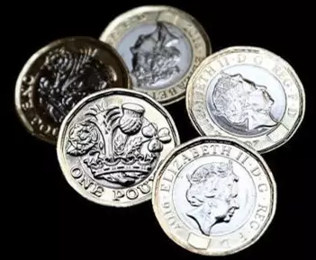 该硬币比旧款略大,但更薄、更轻。在女王头像下方,有块五边形像个小盾牌的图案,是一道“hologram-like”(雷射立体影像)图案,在灯光下左右翻动硬币,从不同角度可分别看到数字“1”或英镑符号。