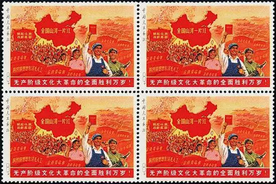 “大一片红”邮票是我国“文化大革命”期间未正式发行的一套邮票。1968年,为庆祝“无产阶级文化大革命”全面胜利,计划发行这套邮票,全套1枚,面值8分。但在送去有关部门审查时,因票幅太大而未批准。因而后来又印制了小票幅的“全国山河一片红”邮票,因此该枚未发行版本被称为“大一片红”。