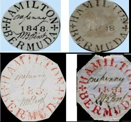 百慕大群岛于1684年成为英国殖民地,现为英联邦成员。其印刷专业邮票始于1865年,但此前也有邮票,形似邮戳,盖印在纸张上生产出来,被称为“佩罗特邮政局长临时邮票”(以下简称为“佩罗特”)。