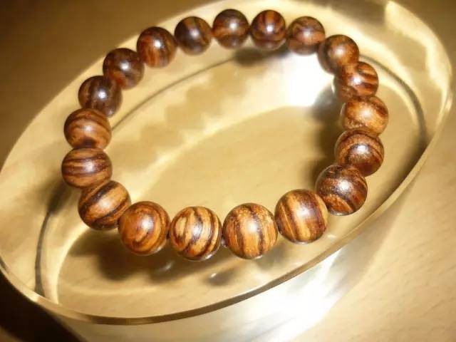 一些假沉香手珠仅用眼力即可看穿。一般结香的沉香树树龄至少10年以上,此时木质的纹路必定混乱交错,绝无可能特别整齐、干净。