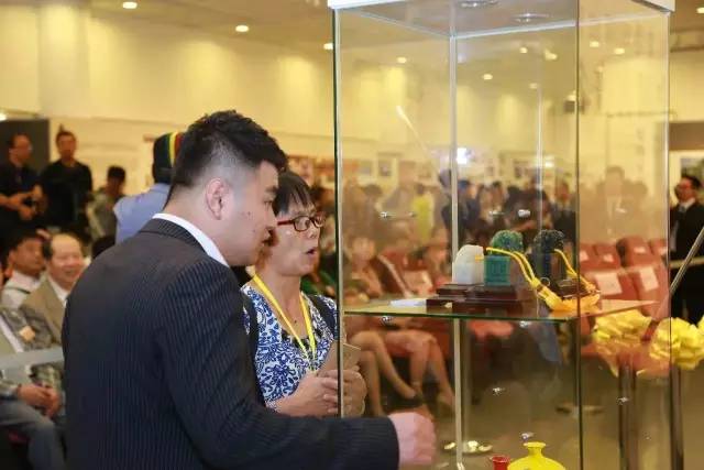 纪念香港回归20周年玉石、瓷器精品《普天同庆·九州方圆宝玺》(上)与《璀璨东方对瓶》(下)深受观众欢迎。