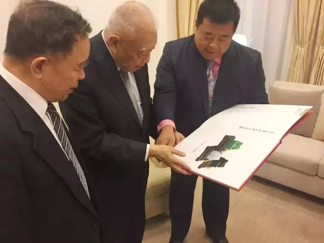 香港特别行政区首任行政长官董建华在欣赏《普天同庆·九州方圆宝玺》