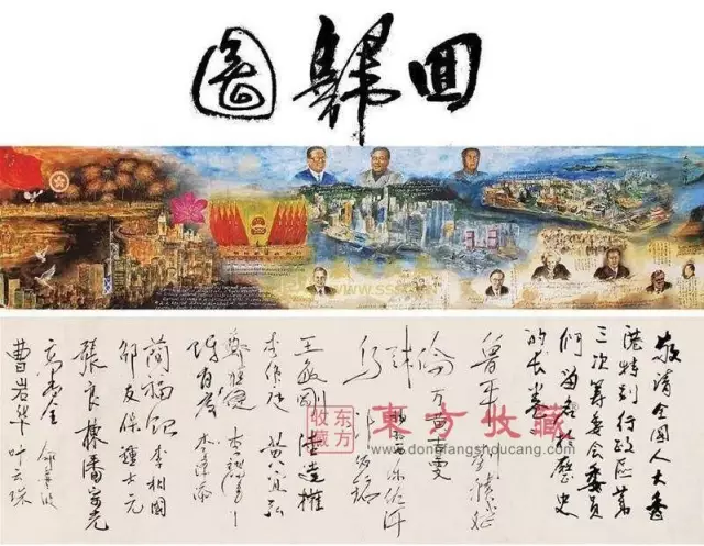 香港题材绘画作品在拍卖市场上也是屡创新高。2007年路璋、陈国力、张志强、路昊的《世纪大典》最终以1376万元拍出;戈壁1996年作的《回归图》国画长卷以401.85万元成交。