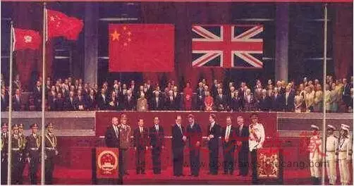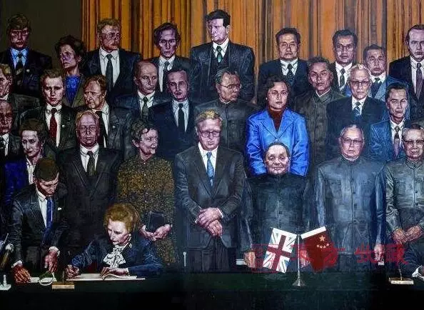 《世纪大典》油画画布三联作,这幅是描述踏进1997年7月1日0时0分,中、英两国于香港会议展览中心举行主权交接仪式,香港正式回归中国。