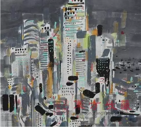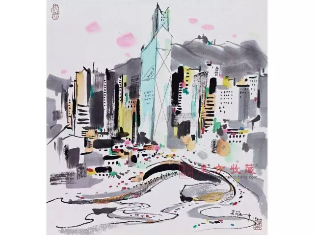 这件《香港》即是吴老晚年风格的代表,该作品创作于1990年,是年吴冠中七十二岁。画面中,吴冠中将西画的形式与色彩融入到中国传统水墨的绘画语言中,勾点之间显现出香港作为一个国际性大都市的繁荣发展,使得香港全貌尽收眼底。