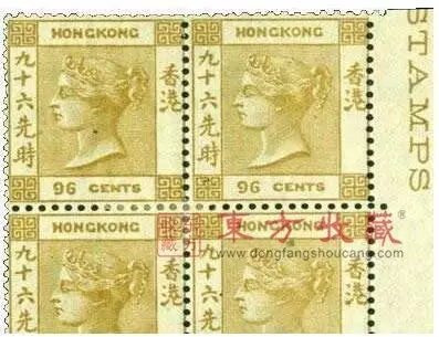 该邮票是香港开埠以来发行的首批邮票之一,被誉为当今香港最重要的历史邮品。印刷邮票时,因错色令票面变成橄榄棕色,并且其水印也成错体,原本置于皇冠下的“CC”字样,错置于皇冠之上。在错印后,香港邮政局由于时间仓卒,未能及时改印,遂于1865年1至2月间推出,但在同年7至8月期间,正确色调的棕灰色邮票印妥发布,而错印的邮票则昙花一现,随即退出市面,这就成就了现时96先时橄榄棕色邮票的巨大价值。
