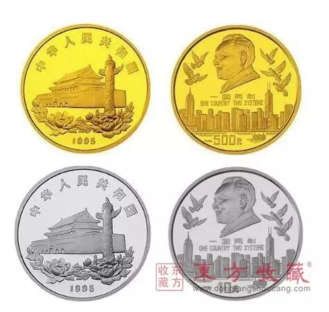 1995年中国人民银行发行香港回归祖国第一组纪念金银币二枚,总面值60元,在2011年嘉德春拍上拍出11270元,涨幅高达188倍;1996年中国人民银行发行香港回归祖国第二组纪念金银币二枚,总面值60元,拍出10580元,涨幅176倍。