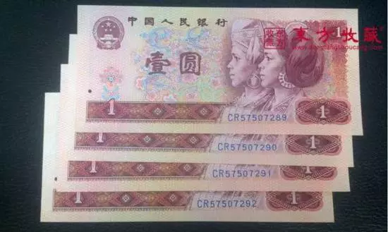 目前第四套人民币正处于隐退状态,虽然国家还未明令其退市,但市面上已经基本找不到。1元纸币的面值较小,但收藏价值却十分惊人,特别是:1元纸币的天蓝冠及天蓝补。