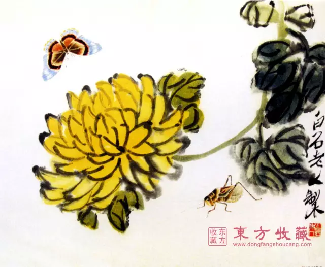 近代中国风雨飘摇,齐白石背井离乡,定居北京,所以他的画钟情于乡村小调、花鸟鱼虫,寄托了他对故乡一草一木的怀念。浓厚的乡土气息,纯朴的农民意识,天真浪漫的童心,富有余味的诗意,是齐白石艺术的内在生命。