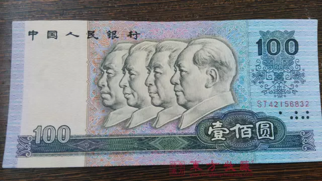 第四套100元面值人民币正面是四大开国伟人头像,造型精美,意义非凡,同时侧面出现了以后一直在沿用的毛泽东头像固定水印。在钞票本身的价值上,甚至还在以往人民币之上,收藏投资价值非常高。