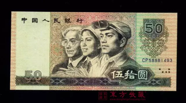 这张50元钞的正面是工人、农民和知识分子头像,象征了建设社会主义的核心力量。50元钞有80版和90版两个版本,原因是由于80版假钞太多,后来在90版上增加了防伪措施。