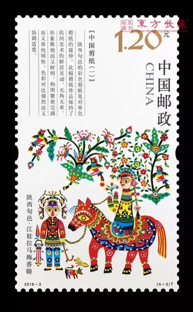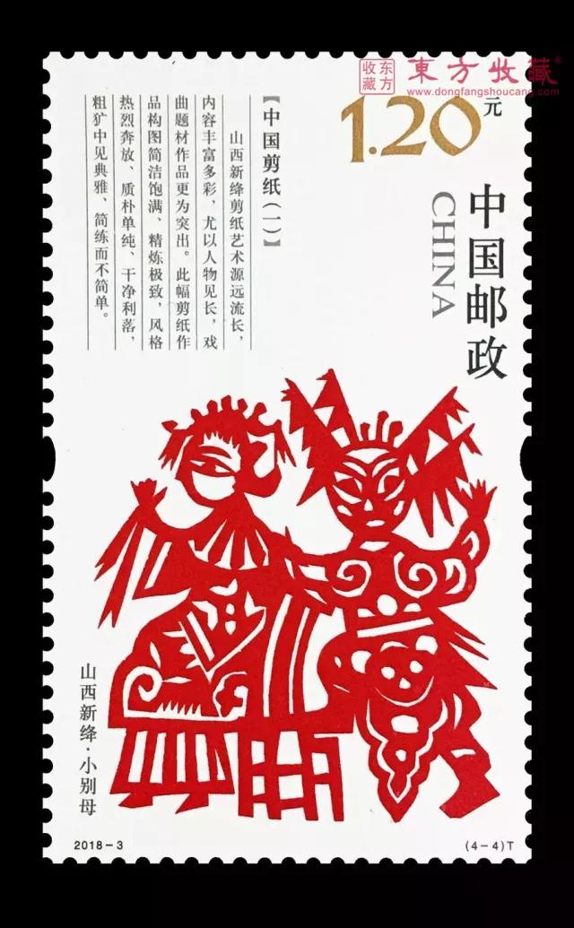 对于广大集邮爱好者来说,什么样的邮票才是值得收藏的呢?说白了,就是既要图样精美,又要内涵丰富,同时最重要的,还要贴近我们老百姓的生活,文化趣味性浓郁,这样的邮票才是好邮票! 当代邮票,要说搞投资、发大财,难度比较大,但说各位藏友对邮票文化的热爱,那是实实在在的。这不,明天即将发行的这套《中国剪纸(一)》邮票,极具特色的版式,民俗气息浓郁的设计,绝对满足你对剪纸的全部幻想! 扫描二维码 直接预定 邮票鉴赏 中国邮政定于2018年1月24日发行这一套《中国剪纸(一)》特种邮票,全套4枚,分别呈现了河北蔚县的《芦花荡》、内蒙古和林格尔的《牧羊图》、陕西旬邑的《江娃拉马梅香骑》、山西新绛的《小别母》这四幅经典剪纸艺术作品。 中国剪纸(一)邮票 有意思的是,这套邮票采用了罕见的“30×50”竖长型版式,除了下面的剪纸画,上面还配了讲述文字,简述了四种剪纸的风格和特点,就像百科全书一样,具有很高的鉴赏价值。 中国传统的剪纸艺术,是广大劳动人民在生产生活中创造出来的艺术,历史悠久,遍布大江南北,和我们的生活息息相关、影响深远,是我国优秀的非物质文化遗产之一。 这套剪纸题材的特种邮票,通过选取不同地域经典的剪纸图案,呈现了各地民居、服饰、器物、祭祀等生活意趣的不同形态,是中国多民族文化特征的最好体现,内涵和底蕴非常深厚。 邮票画面用简单的白底色,衬托五彩鲜艳、造型丰富的剪纸,原汁原味地还原了剪纸的传统风貌,令不同地域、风格各异的剪纸作品跃然于方寸之间。 加上画面中的文字,四种风格迥异的剪纸图案被统为一体,加强了版面的整体性和连贯性,自然流畅、富有变化,给人带来一种视觉上的舒适感受。 四方连 此外,从邮票发行的名称来看,未来还会继续发行“中国剪纸”这一系列的邮票,系列发行就意味着丰富的内涵变化和设计样式,又是系列当中的第一套,相比较其它邮票,收藏的价值和意义也更高。 大版票 发行信息 志号:2018-3 图序/图名/面值 (4-1)T河北蔚县·芦花荡1.20元 (4-2)T内蒙古和林格尔·牧羊图1.20元 (4-3)T陕西旬邑·江娃拉马梅香骑1.20元 (4-4)T山西新绛·小别母1.20元 邮票规格:30×50毫米 齿孔度数:13.5度 整张枚数:12枚 整张规格:150×194毫米 版别:胶印 防伪方式:防伪纸张、防伪油墨、异形齿孔、荧光喷码 印制厂:河南省邮电印刷厂 东方收藏您身边的投资收藏专家 典藏专线:400-821-0007.jpg)