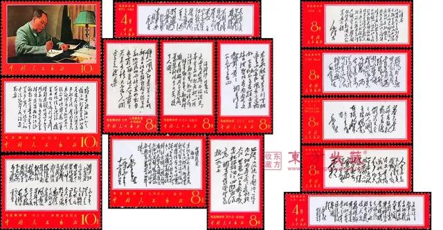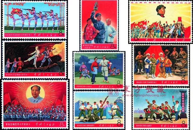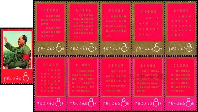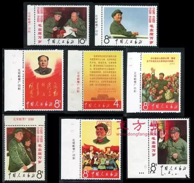 文革邮票是特殊历史时期的产物,永远都无法复制,所以现在是越来越受集邮者的欢迎了。文革十年,也不过发行了19套,约80枚,全部面值加起来也只有7.96元。 目前一套普通的、不带边纸的文革邮票小全套,市场价就在18万左右,更别说全品相大全套了,如果上面还带有厂铭、色标、顺序号、流水号等,这价格真就得靠拍卖来定夺了。 《战无不胜的毛泽东思想万岁》 1967年4月19日,《战无不胜的毛泽东思想万岁》在北京发行,是邮电部为庆祝北京革委会成立、为满足亿万人民的渴望,而提前发行的,是我国取消志号后发行的第一套邮票。 图案是主席在天安门上检阅红卫兵的照片,毛泽东身着军装,臂戴袖章,一手拿军帽,一手向百万群众游行队伍挥手致意,其余邮票则均印有毛泽东语录。整套邮票政治色彩浓烈,采用耀眼的红色和金黄色象征革命。 《毛主席万岁》 这套邮票的全称是《我们伟大的导师、伟大的领袖、伟大的统帅、伟大的舵手毛主席万岁》,全套8枚,分别呈现了7个文革场景,剩下一枚则摘录了第八届十一中全会的公报。 这套邮票的宣传色彩很鲜明,突出了主席对红卫兵的关心和期望,林彪以副主席、副统帅的身份和毛泽东在一起,后4枚边上都印有“伟大的导师、伟大的领袖、伟大的统帅、伟大的舵手毛主席万岁”字样。 《毛主席的革命文艺路线胜利万岁》 文革期间,各地文艺团体都创作并演出了《红灯记》等八个现代题材的戏剧,这些戏剧在题材和表现手法上都有所创新,影响很大,这套邮票也主要表现了各个地区的戏曲文化表演场景。 《毛主席诗词》 毛泽东是一位著名的文学家,对中国历史和传统文化有精湛的理解,对中国古典诗词、书法艺术造诣尤深,他青少年时曾临写过晋唐楷书和魏碑,使他有扎实的功底。这套邮票也主要体现了主席的文学才华。 《大海航行靠舵手,干革命靠毛泽东思想》 这套邮票最独特的地方在于,正常出厂的邮票,厂铭是金色的,但当时还特别发行了一批红色厂铭的编外邮票,数量非常稀少,尤其是经过这么多年时间,当今市场几乎已经看不到了。 《中共中央委员会主席毛泽东同志支持美国黑人抗暴斗争的声明》 从世纪50年代中期开始,美国的黑人就连续发动了大规模的反对种族歧视、争取平等权利的斗争,之后数年间,甚至一度成为美国一百多年来最严重的国内危机,对此,毛泽东也多次发表声明支持,这套邮票也是发行于这一时期。 《毛主席最新指示》 文革时期,毛泽东语录广泛流传在群众之中,所以邮电部也发行了几套以毛泽东语录为主题的邮票,这就是其中一套,虽然邮票构图单一,但时代气息浓郁,也是当时社会风貌的最好见证。 《毛主席去安源》 中共一大之后,毛泽东回到湖南,在江西安源建立委员会,播下了革命种子,这套邮票就是纪念这一事件而发行的。邮票画面选用油画家刘春华的“毛主席去安源”进行设计。 《毛主席最新指示》 这枚邮票的画面内容是毛泽东于1968年8月的一段指示,因为当时的政治形势,邮票都是直接承担政治宣传的职能,这枚邮票的画面内容和设计构思,都是典型的文革邮票。