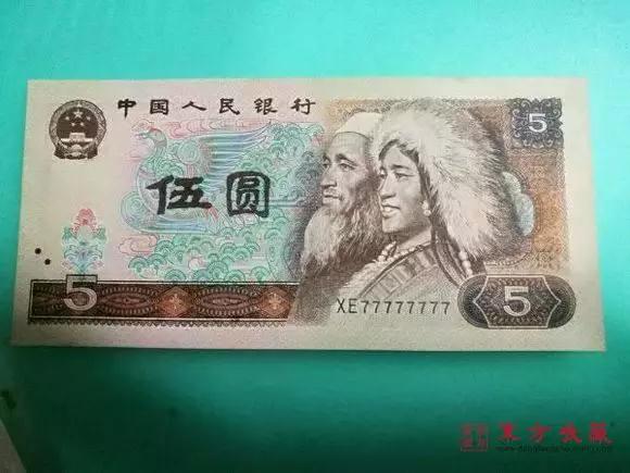 第四套人民币中的“麒麟号”五元纸币,收藏价值达到5万元,整整涨了1万倍。