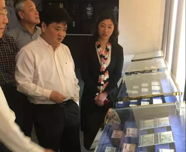 东方收藏陈总(右一)陪同民政局领导参观钱币展厅