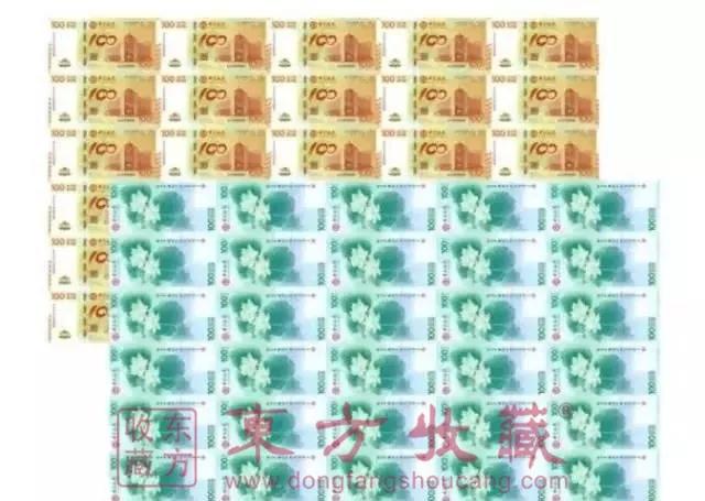 中国银行百年澳门荷花整版钞,面值100元,共三十连体,是迄今为止藏品市场唯一的水墨题材纪念钞票。