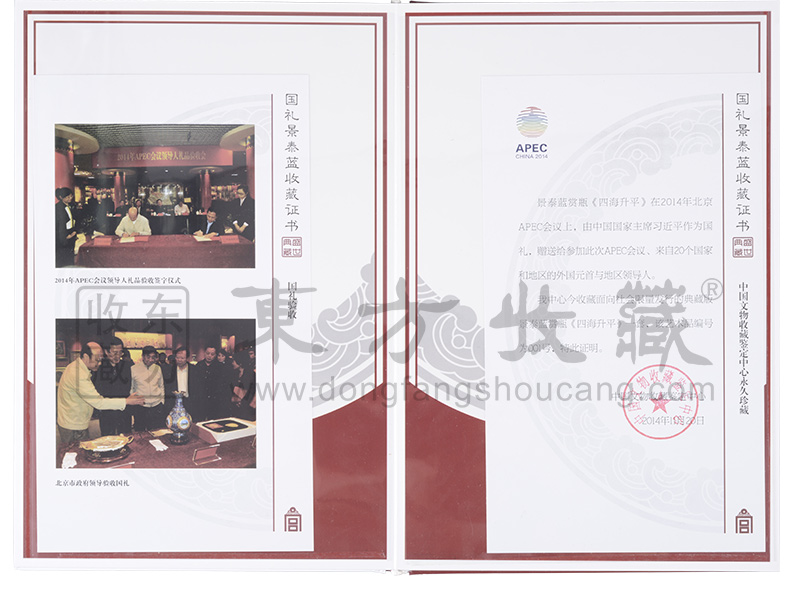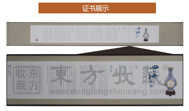 东方收藏承诺遵守商业道德,诚信为本、依法经营,接受会员监督。东方收藏所有藏品均有相关机构出具的证书,如果您发现虚假藏品,即可假一赔十。
