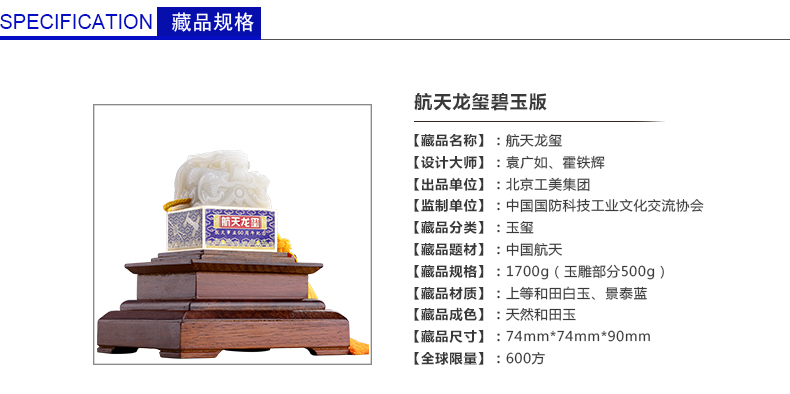 北京工美集团 玉玺 航天龙玺 白玉版 航天玉玺 纪念中国航天事业60周年 和田玉