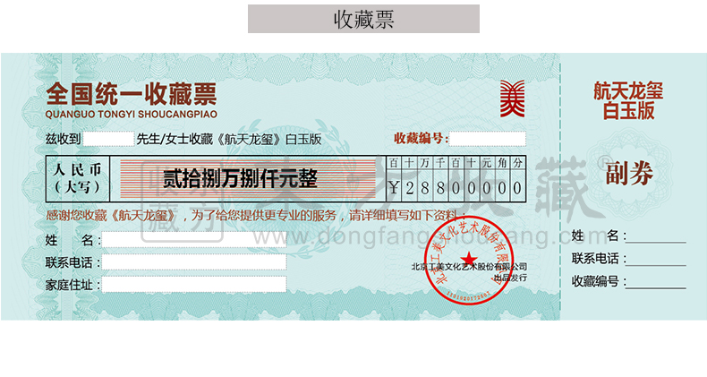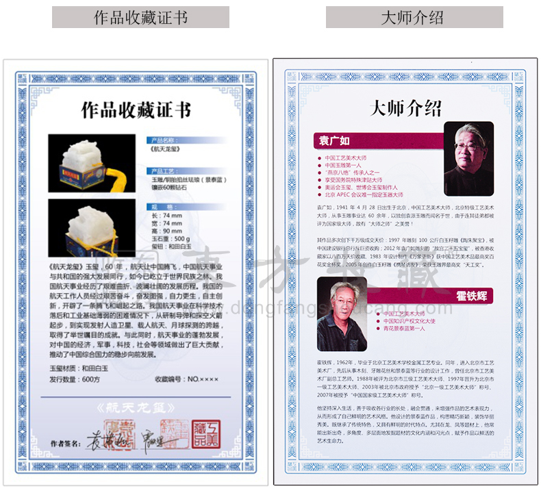 东方收藏承诺遵守商业道德,诚信为本、依法经营,接受会员监督。东方收藏所有藏品均有相关机构出具的证书,如果您发现虚假藏品,即可假一赔十。