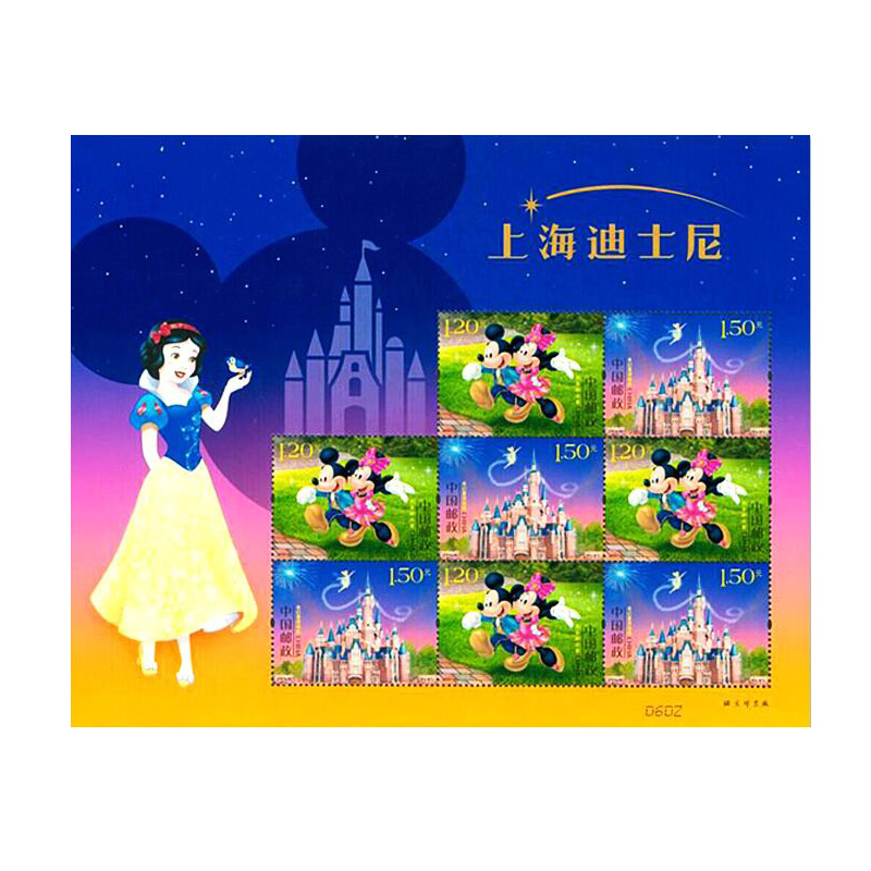 中国邮政定于2016年6月16日发行《上海迪士尼》特种邮票1套2枚,小全张1枚。