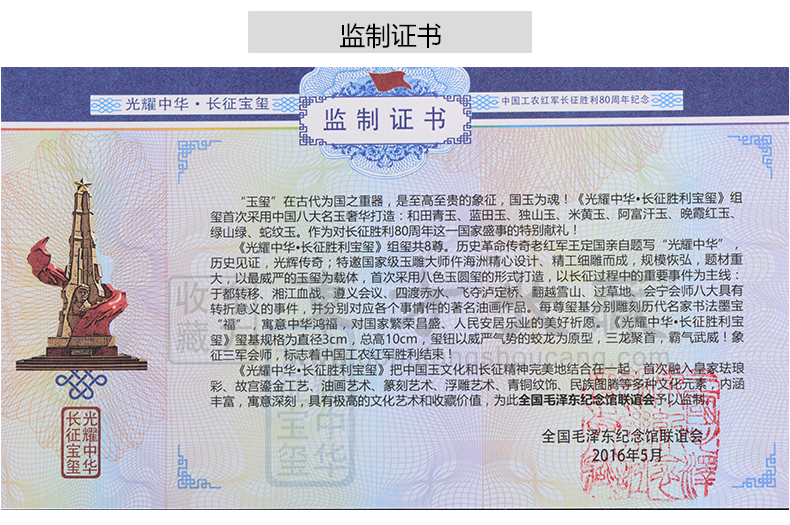 东方收藏承诺遵守商业道德,诚信为本、依法经营,接受会员监督。东方收藏所有藏品均有相关机构出具的证书,如果您发现虚假藏品,即可假一赔十。