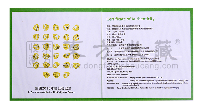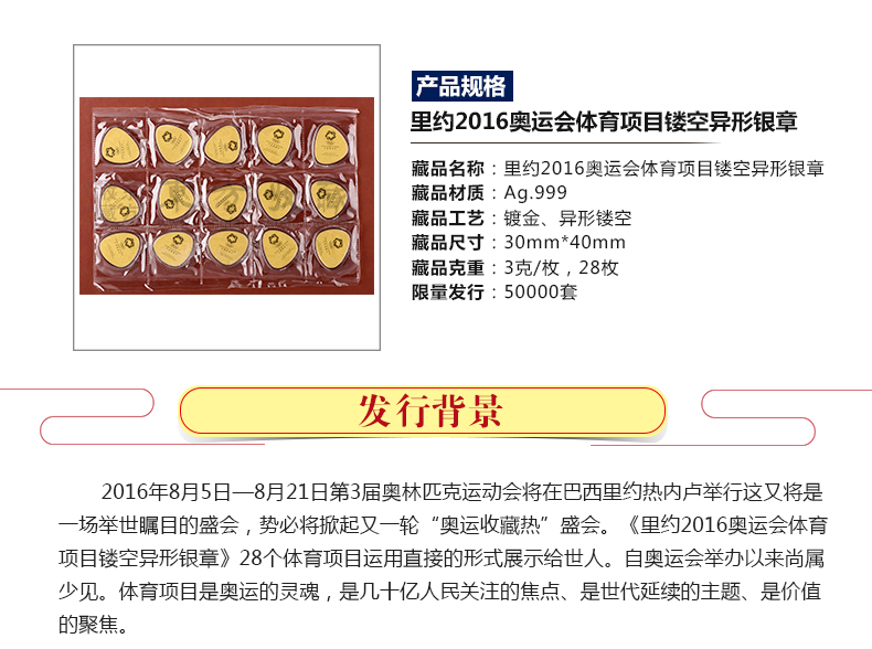 里约2016奥运会体育项目镂空异形银章 里约奥运会官方特许商品