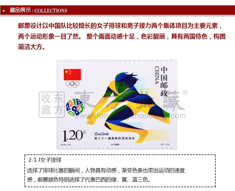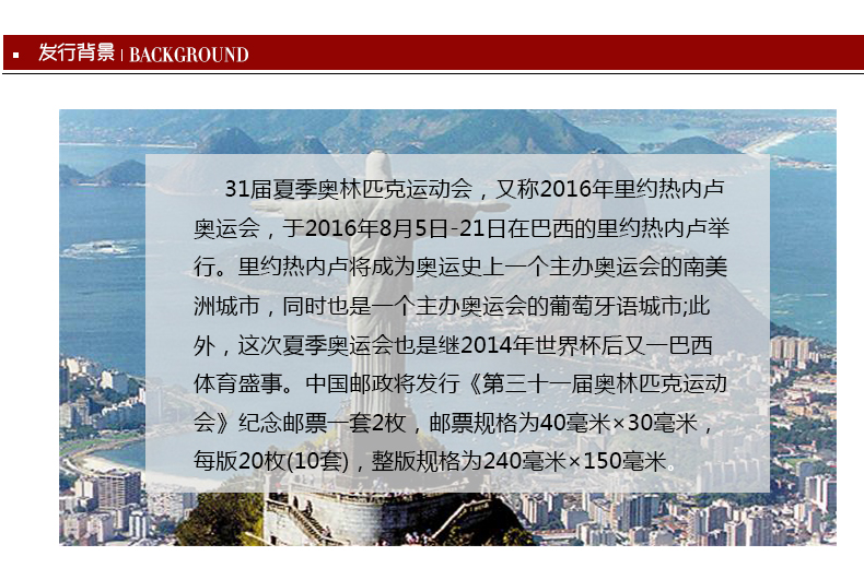 《第三十一届奥林匹克运动会》纪念邮票 一套2枚 2016里约奥运会邮票 邮费自理
