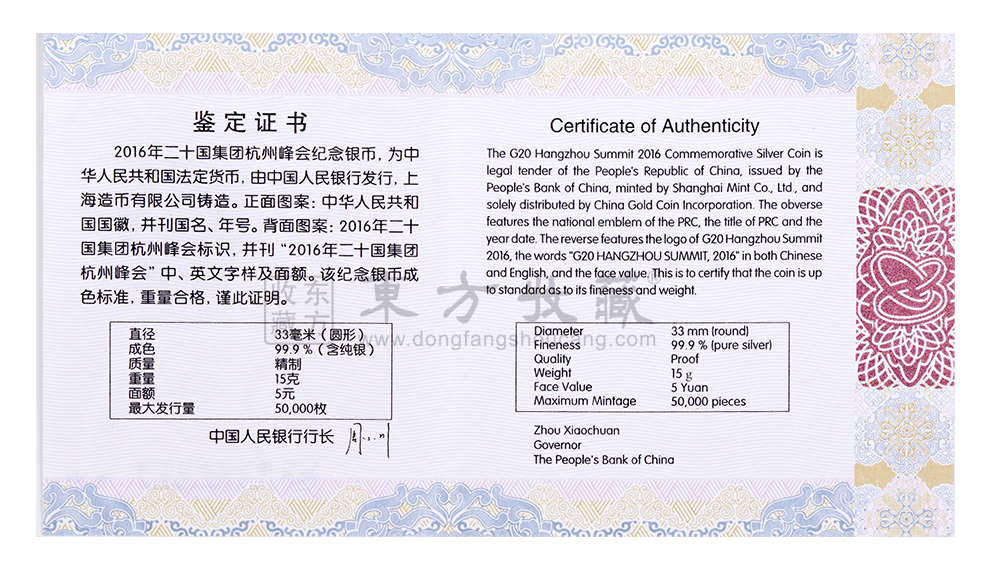 东方收藏承诺遵守商业道德,诚信为本、依法经营,接受会员监督。东方收藏所有藏品均有相关机构出具的证书,如果您发现虚假藏品,即可假一赔十。