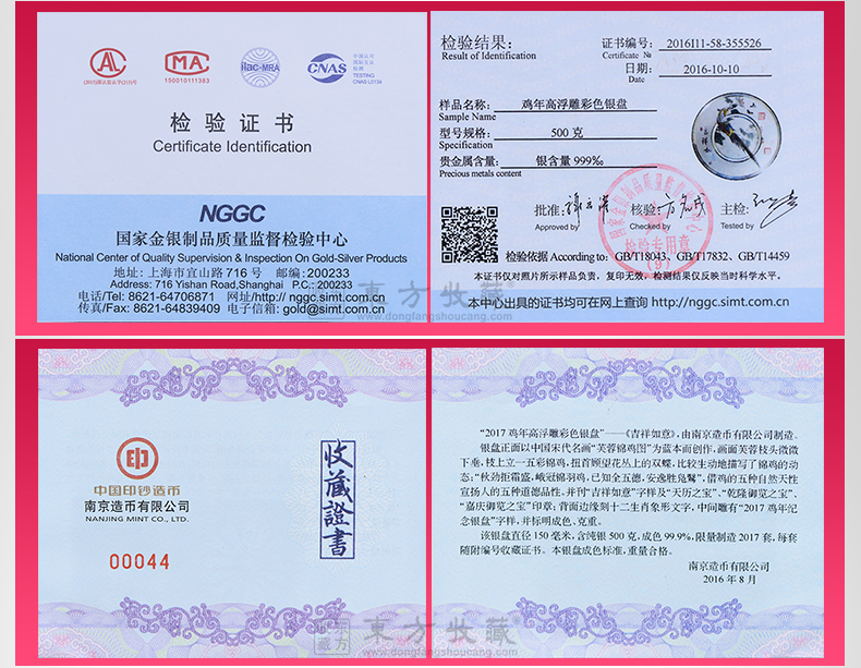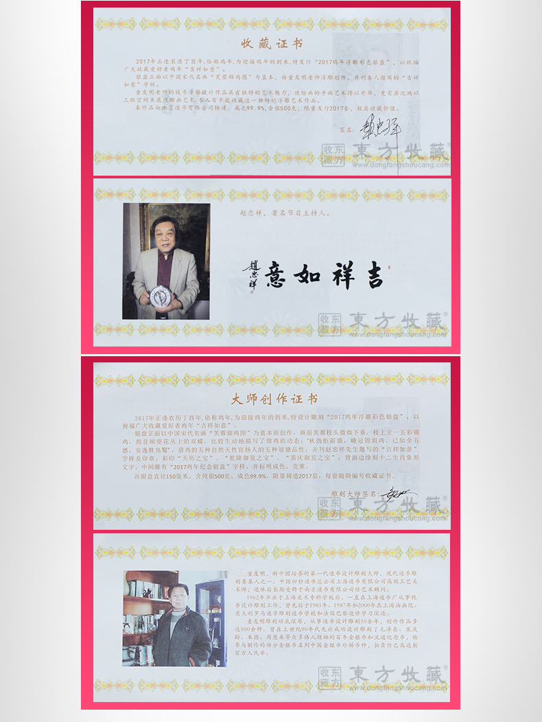 东方收藏承诺遵守商业道德,诚信为本、依法经营,接受会员监督。东方收藏所有藏品均有相关机构出具的证书,如果您发现虚假藏品,即可假一赔十。
