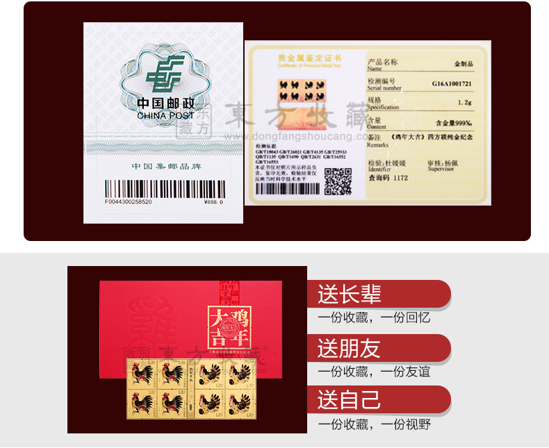 东方收藏承诺遵守商业道德,诚信为本、依法经营,接受会员监督。东方收藏所有藏品均有相关机构出具的证书,如果您发现虚假藏品,即可假一赔十。