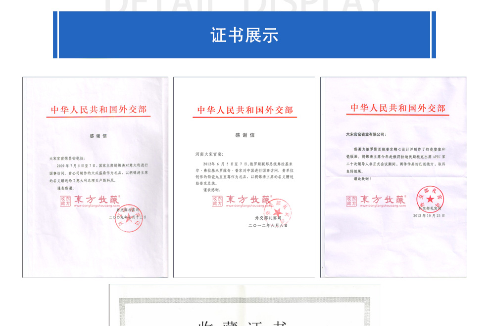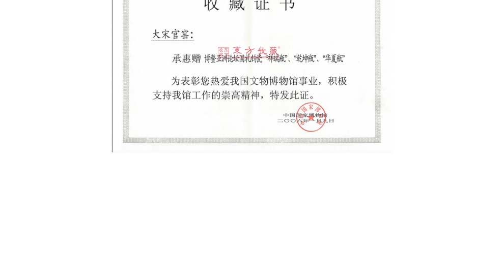 东方收藏承诺遵守商业道德,诚信为本、依法经营,接受会员监督。东方收藏所有藏品均有相关机构出具的证书,如果您发现虚假藏品,即可假一赔十。