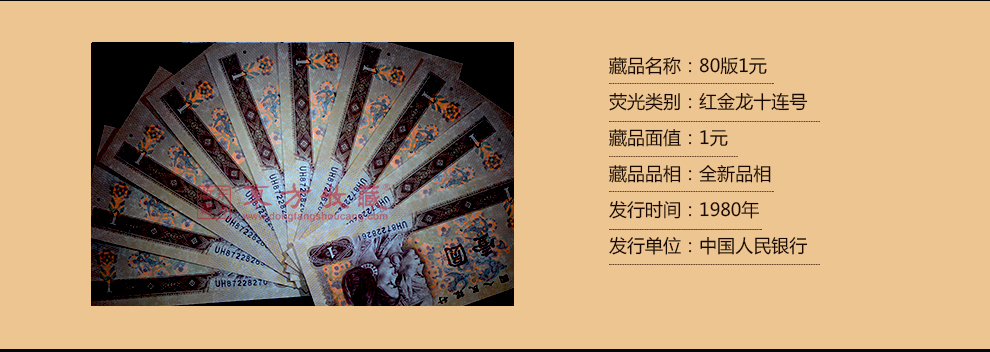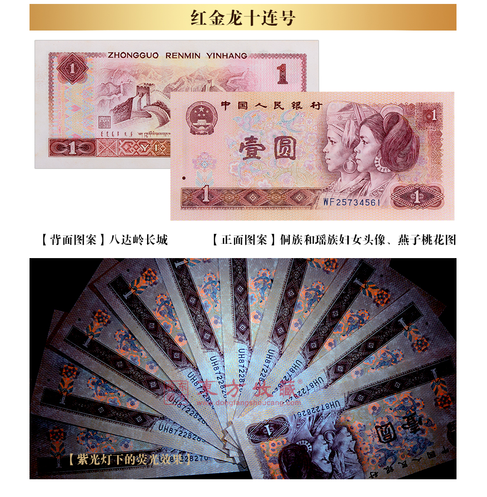 第四套人民币 1980年1元荧光版红金龙 十连号 全新品相