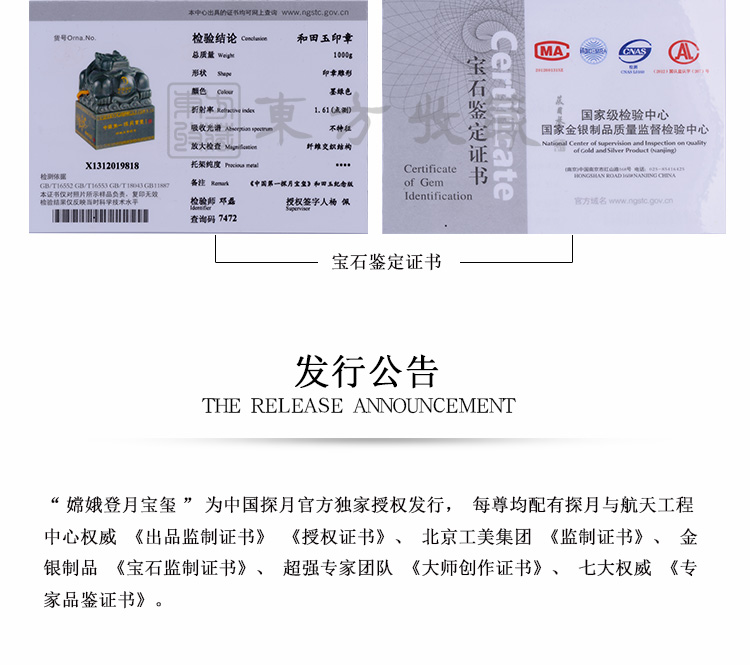 东方收藏承诺遵守商业道德,诚信为本、依法经营,接受会员监督。东方收藏所有藏品均有相关机构出具的证书,如果您发现虚假藏品,即可假一赔十。