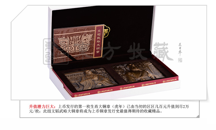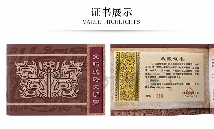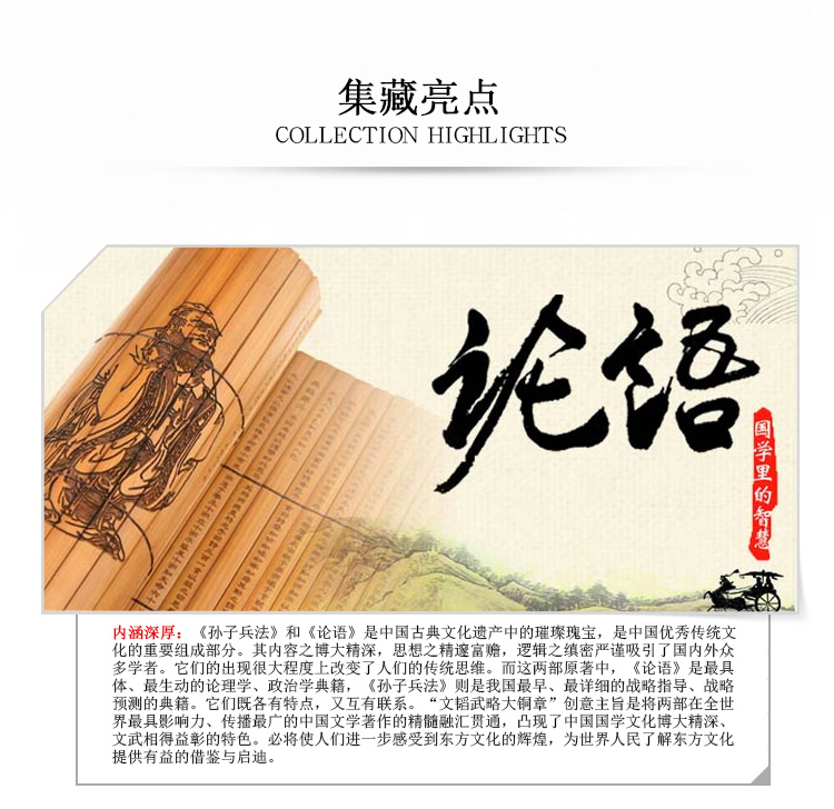 · 《论语》和《孙子兵法》文韬武略大铜章两枚,90平方毫米一枚。