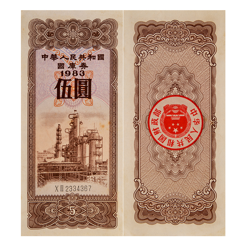 中国国库券1983年5元 单张