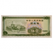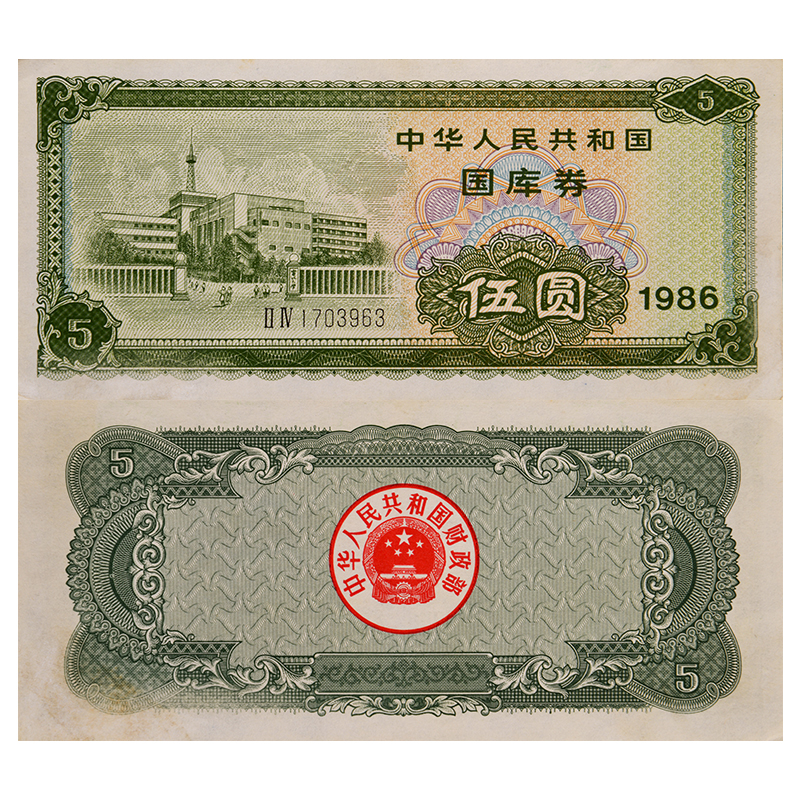 中国国库券1986年5元 单张