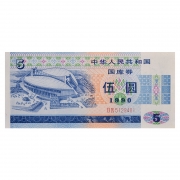 中国国库券1990年5元 单张