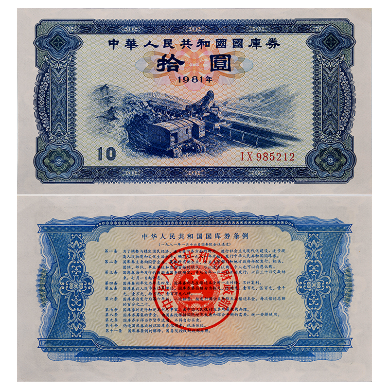 中国国库券1981年10元 单张