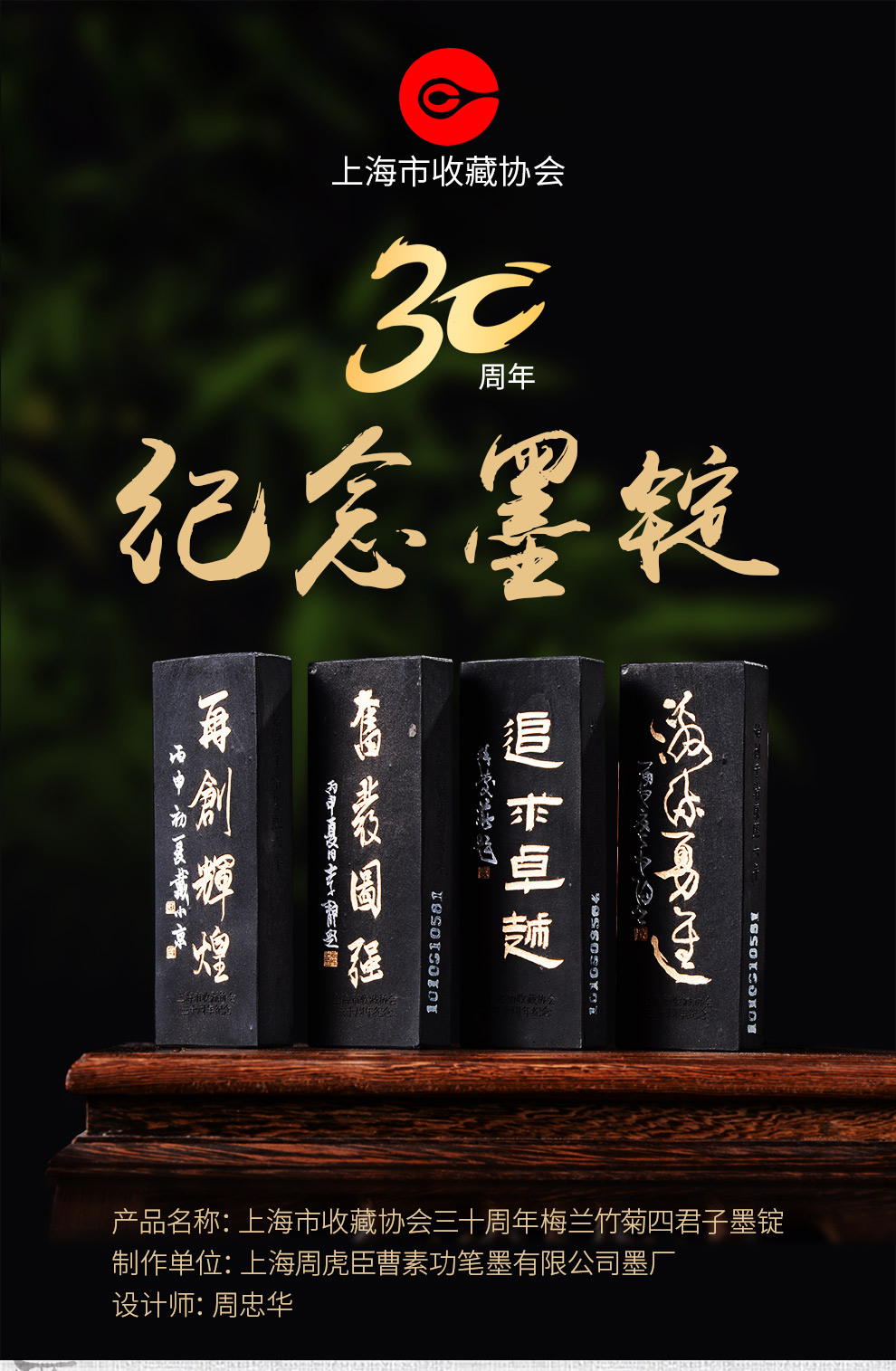 上海市收藏协会30周年纪念品 梅兰竹菊四君子墨锭