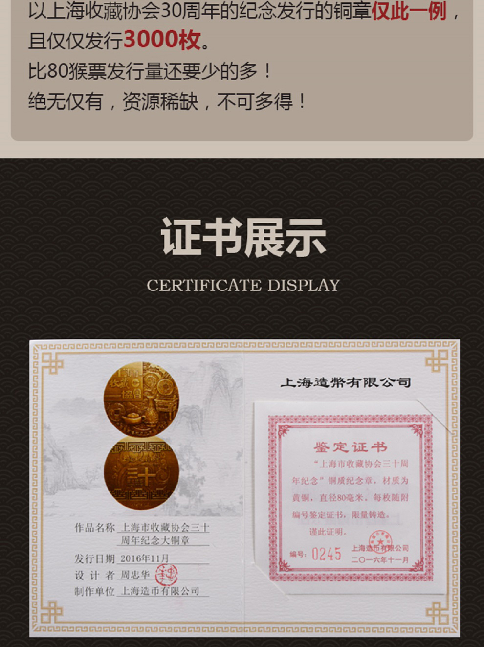 东方收藏承诺遵守商业道德,诚信为本、依法经营,接受会员监督。东方收藏所有藏品均有相关机构出具的证书,如果您发现虚假藏品,即可假一赔十。