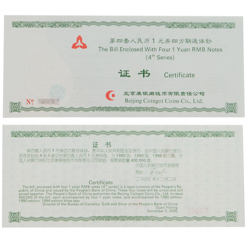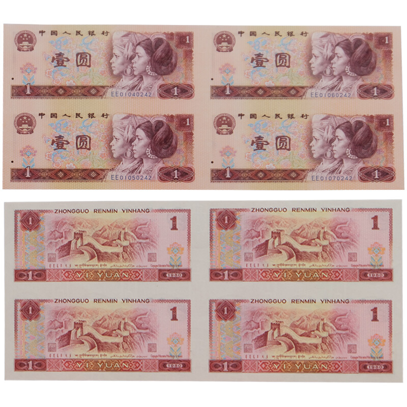 第四套人民币连体钞 1元纸币四连体钞 康银阁版 内含801、901、961